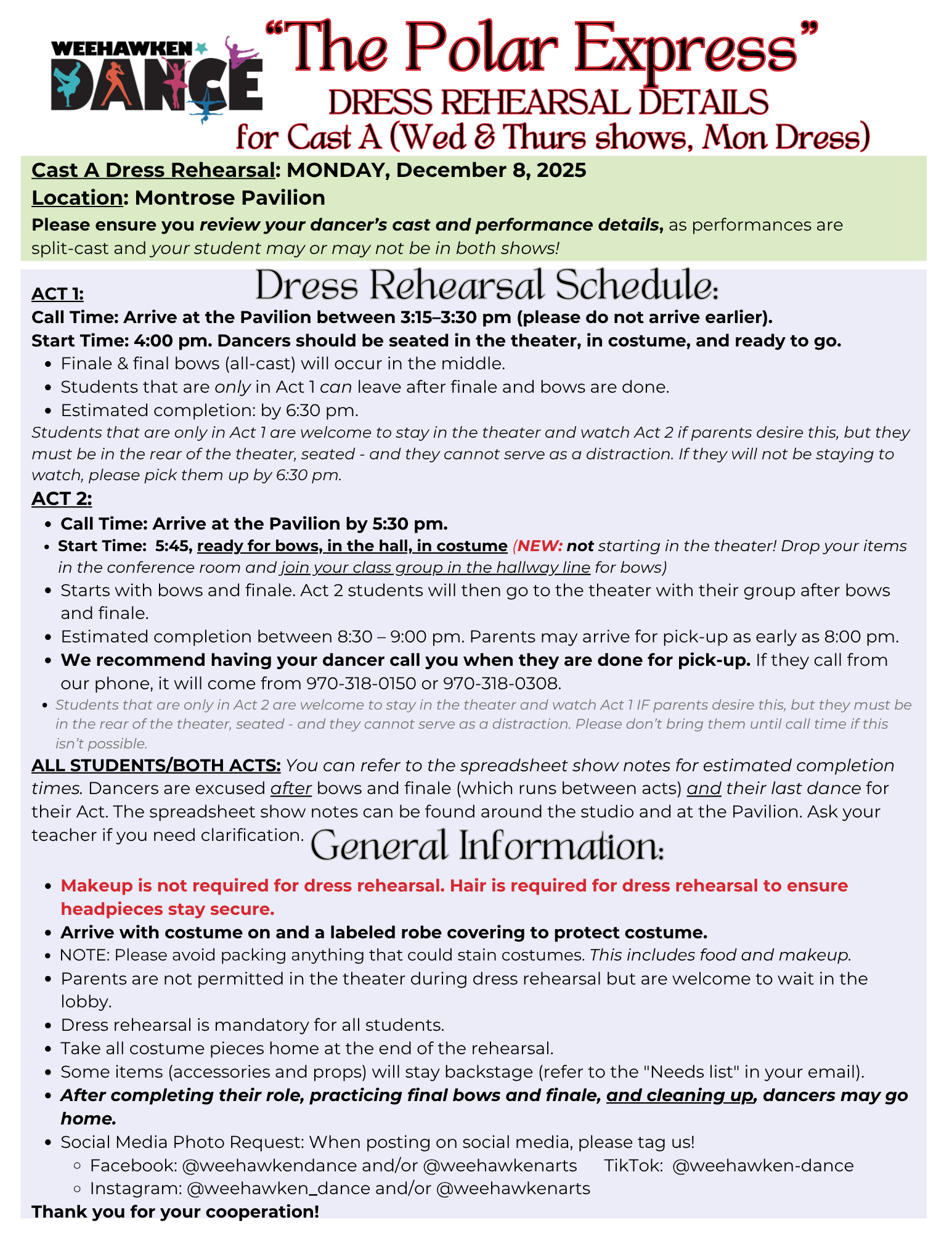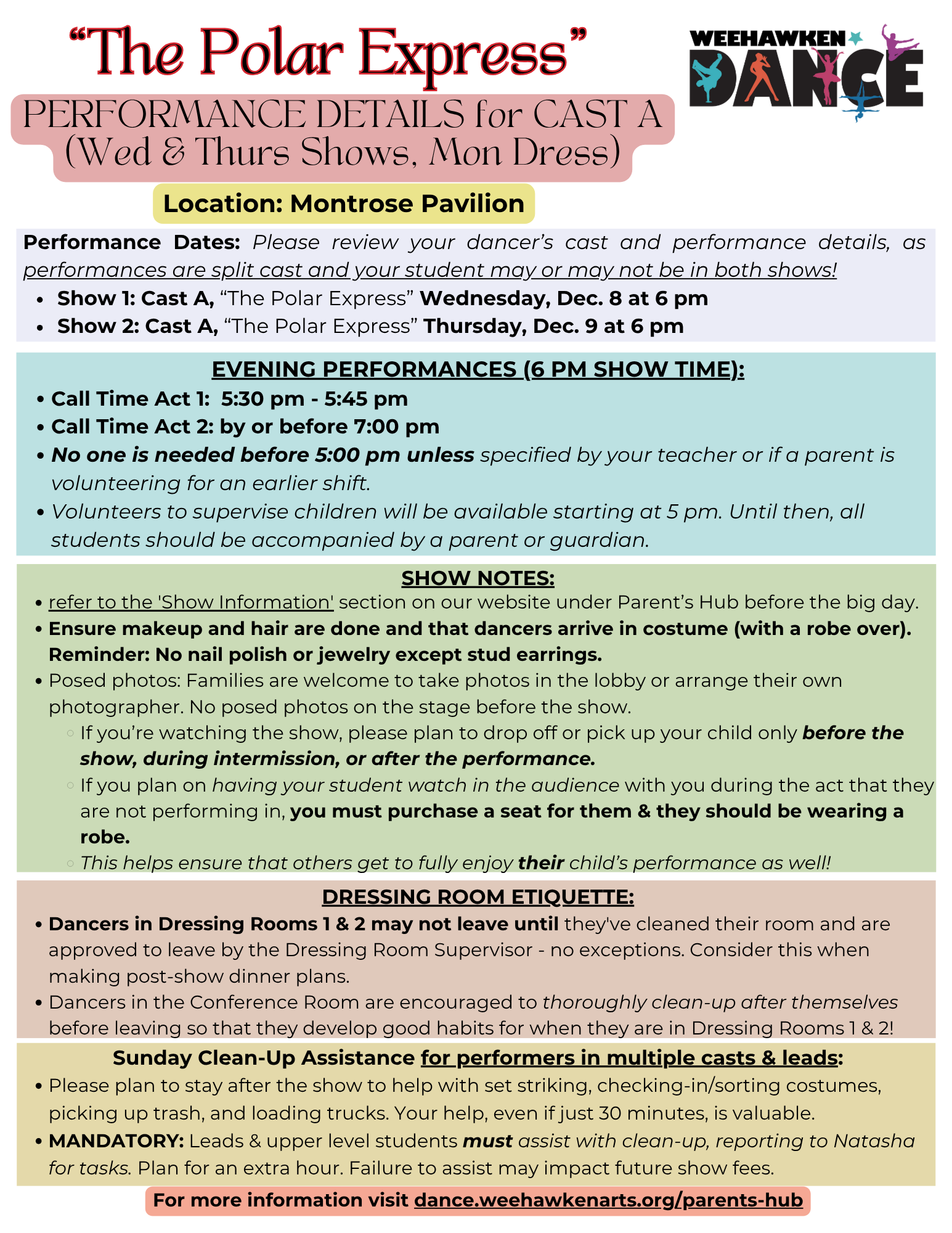 These are the first two performances of The Polar Express show week. Your dancer will perform in one or both of these shows—please check your casting information carefully to confirm.