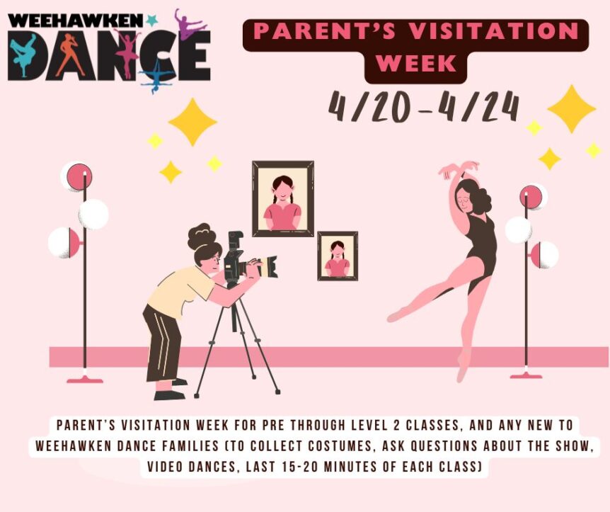 - For Pre through Level 2 Classes, and any NEW to Weehawken Dance families (to collect costumes, ask questions about the show, video dances, last 15-20 minutes of each class)